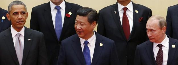 Ο πρόεδρος των ΗΠΑ Barack Obama, ο Κινέζος πρόεδρος Xi Jinping, και ο πρόεδρος της Ρωσίας Vladimir Putin στο Πεκίνο, τον Νοέμβριο του 2014. KIM KYUNG-HOON / REUTERS