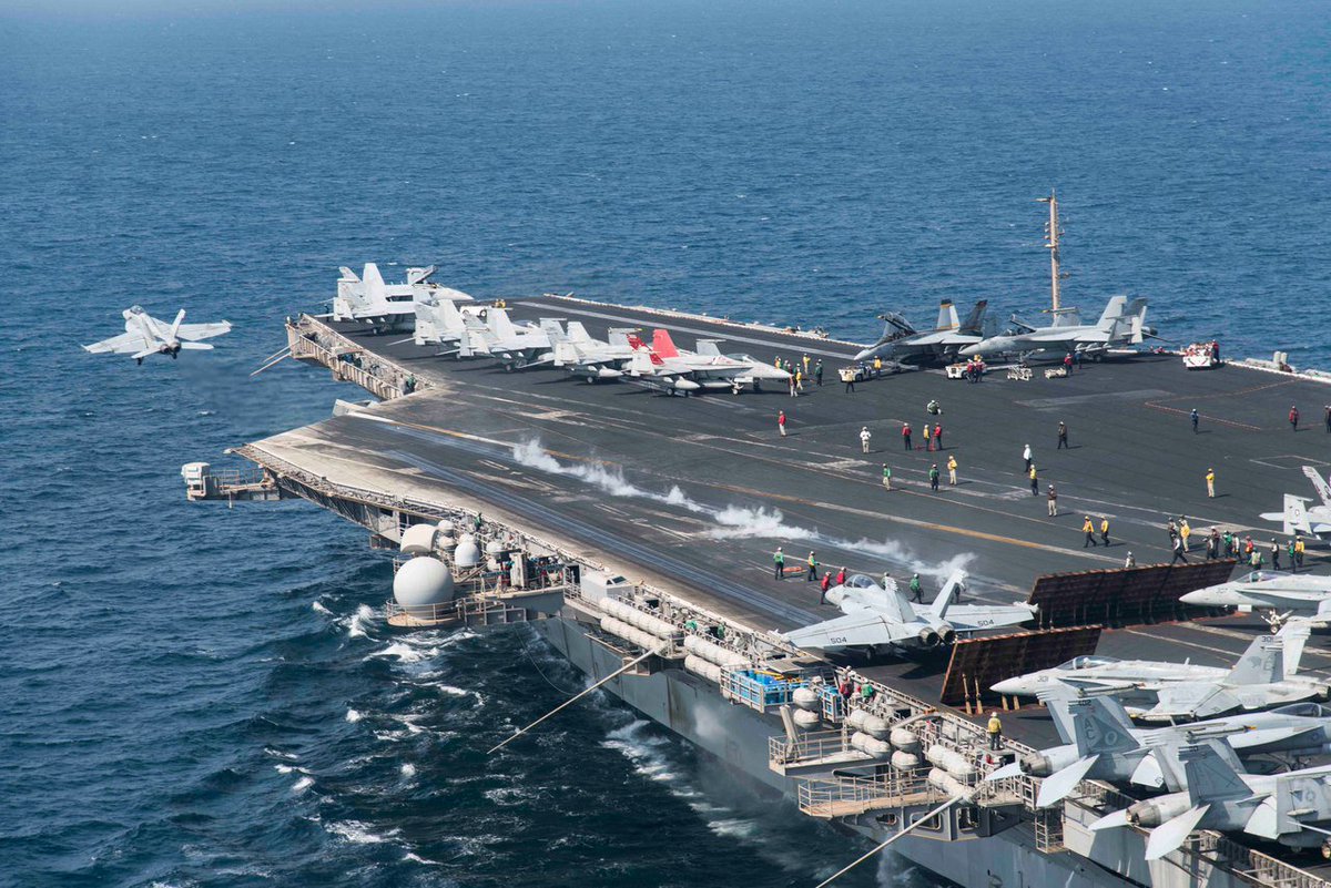 (CVN 69) με την ομάδα μάχης πέρασε τον Περσικό Κόλπο για να ξεκινήσουν οι πιδρομές και η ομοβροντία πυραύλων Tomahawk.