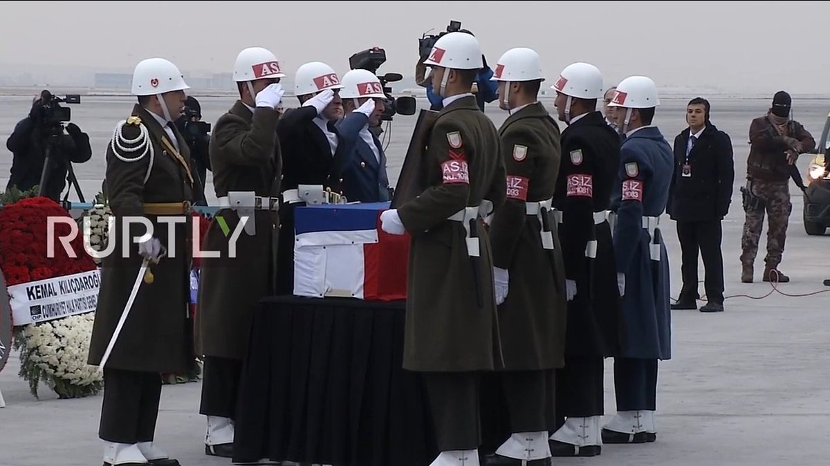 Commemoration ceremony for assassinated Russian Ambassador to Turkey Andrei Karlov in #Ankara Airport. pic.twitter.com/CPkTmefW6V— Military Advisor (@miladvisor) 20 Δεκεμβρίου 2016