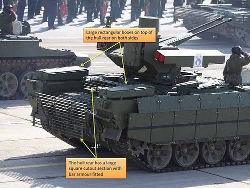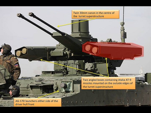 Ο κυρίως οπλισμός του “BMPT” που παρουσιάστηκε στη δοκιμαστική διέλευση της ρωσικής στρατιωτικής παρέλασης 2018 αποτελείται από δύο συζυγή αυτόματα πυροβόλα “2A42” των 30 χιλιοστών με φορτίο πυρομαχικών οχτακοσίων πενήντα βλημάτων, δύο εκτοξευτές αντιαρματικών καθοδηγούμενων πυραύλων ειναι εγκατεστημένοι σε κάθε πλευρά του πύργου. Ο δευτερεύων οπλισμός περιλαμβάνει ένα συζυγές πολυβόλο “PKTM” των 7,62 χιλιοστών.