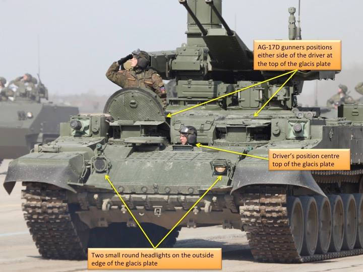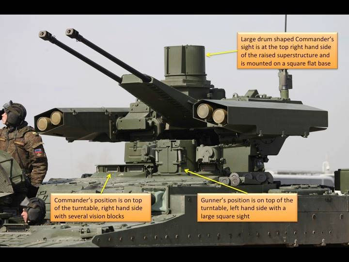 Το “BMPT” έχει πλήρωμα τριών που περιλαμβάνει τον οδηγό, αρχηγό και πυροβολητή. Ο πυροβολητής διαθέτει συνδυασμένο σκοπευτικό με κανάλια ημέρα και θερμικού με ενσωματωμένο αποστασιόμετρο λειζερ και ενα δίαυλο λειζερ καθοδήγησης πυραύλων. Το “BMPT” έχει την ικανότητα να αναγνωρίσει τις εχθρικές απειλές σε απόσταση πέντε χιλιάδων μέτρων κατά την ημέρα μέσω του σκοπευτικού ημέρας και στα 3300 μέτρα κατά την νύχτα χάρις στο σύστημα θερμικής παρατήρησης.