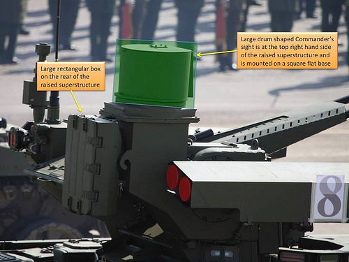Ο αρχηγός του οχήματος διαθέτει ένα σκοπευτικό ημέρας/νύχτας που περιλαμβάνει πανοραμική οθόνη (TV) και σκοπευτικό θερμικής παρατήρησης με ενσωματωμένο αποστασιόμετρο λειζερ και ανεξάρτητο οπτικό πεδίο σταθεροποιημένο σε δυο άξονες. Μπορεί να αναγνωρίσει στόχο τύπου άρματος σε απόσταση πέντε χιλιάδων μέτρων κατά την ημέρα μέσω του διαύλου ημέρας και στα 3300 μέτρα κατά την νύχτα.