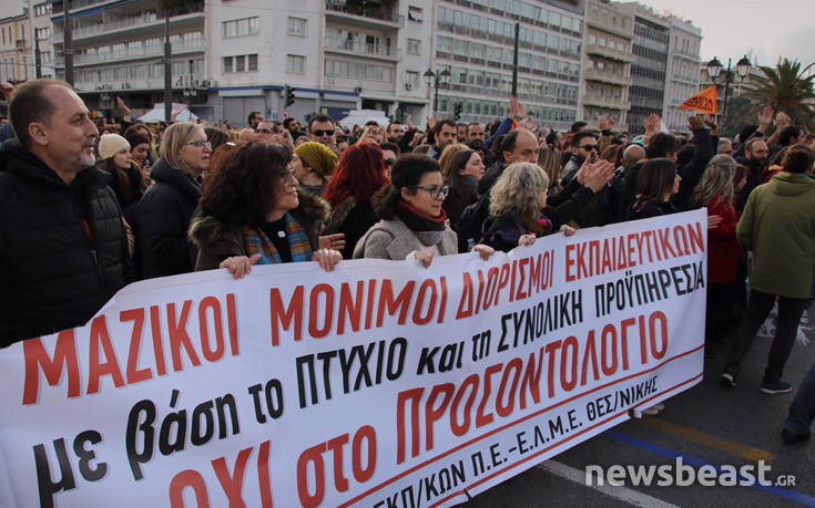 Αυτή την ώρα η πορεία, στην οποία συμμετέχουν μέλη του ΠΑΜΕ, της Διδασκαλικής Ομοσπονδίας Ελλάδος και της ΟΛΜΕ, έχει φτάσει στη Βουλή.