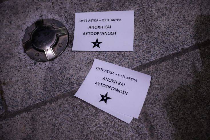 Τρικάκια σε εκδήλωση για τα τέσσερα χρόνια διακυβέρνησης από τον ΣΥΡΙΖΑ στο Αιγάλεω πέταξαν μέλη του «Ρουβίκωνα» το βράδυ της Τετάρτης.