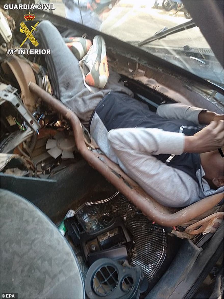 Χαρακτηριστικό παράδειγμα αποτελούν οι φωτογραφίες που κάνουν σήμερα τον γύρο του διαδικτύου, και δείχνουν έναν νεαρό μετανάστη στριμωγμένο στο χώρο πίσω από το ντουλαπάκι ενός αυτοκινήτου.