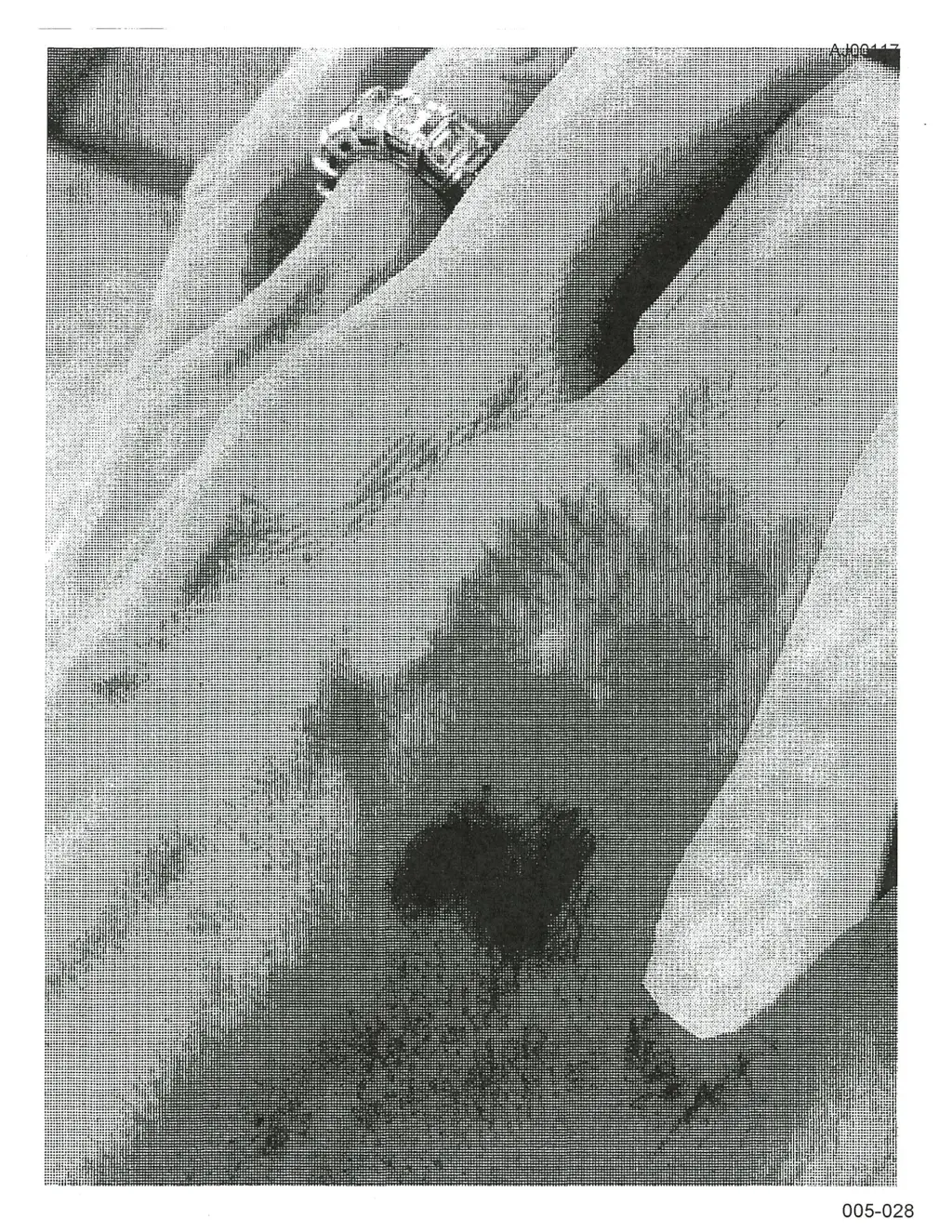 Εκτός από την πλάτη και τον αγκώνα της, η έκθεση του FBI αναφέρει ότι η Τζολί είπε ότι υπέστη και ένα τραύμα σαν έγκαυμα στο αριστερό της χέρι. Μια φωτογραφία του τραύματος περιλαμβάνεται στην αναφορά.