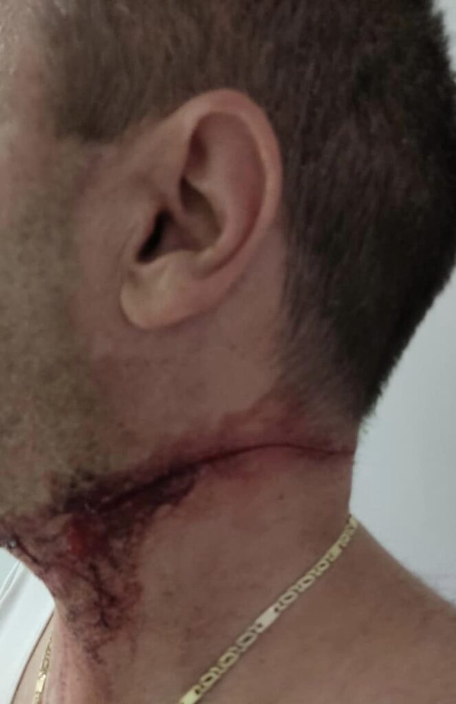 Πιθανότατα, χρησιμοποίησε τα θραύσματα από το διαχωριστικό. Οι αστυνομικοί παρέμειναν ψύχραιμοι, κατέβηκαν από το όχημα και ακινητοποίησαν τον δράστη της επίθεσης.