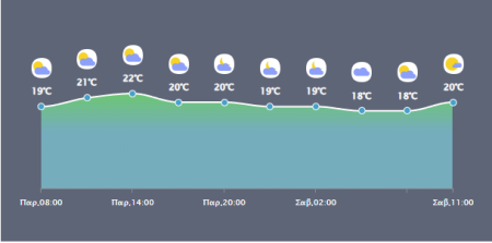 Οι μετεωρολογικές συνθήκες ευνοούν τη μεταφορά αφρικανικής σκόνης κυρίως στα ανατολικά και τα νότια. Οι άνεμοι θα πνέουν από νότιες διευθύνσεις 4 με 6 και τοπικά στο βόρειο Αιγαίο 7 μποφόρ.