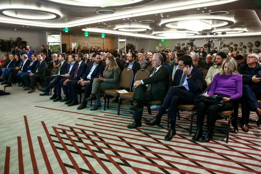 Ο υπεύθυνος του Κ.Τ.Ε μεταφορών και υποδομών Τάσος Νικολαΐδης και ο επικεφαλής της ΔΗΣΥΜ και πρόεδρος της αντιπροσωπείας ΤΕΕ Νίκος Μήλης χαιρέτησαν με τις ομιλίες τους την εκδήλωση, που πραγματοποιήθηκε στην κατάμεστή αίθουσα του ξενοδοχείου Κάραβελ την Τρίτη 02/12.