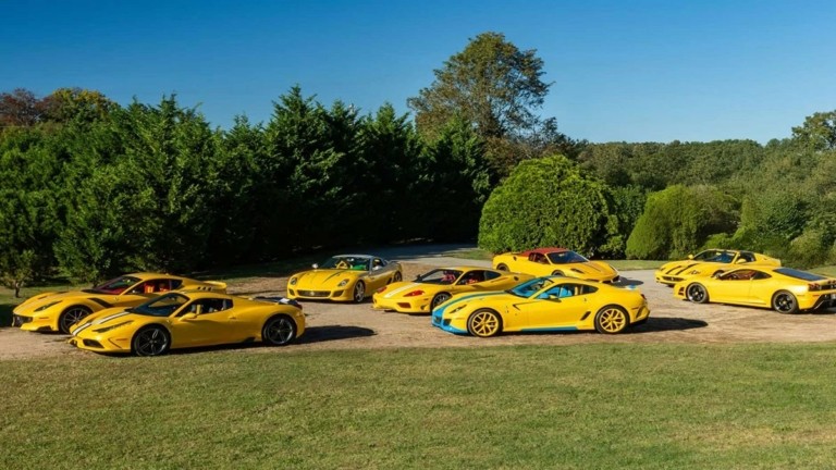 είναι σχεδόν όλα κίτρινα, συχνά τελευταία κομμάτια της εκάστοτε σειράς παραγωγής και –το πιο εντυπωσιακό– έχουν εξαιρετικά χαμηλά χιλιόμετρα. Ενδεικτικά, η Ferrari 308 GTS Quattrovalvole του 1984 θεωρείται από τις… πιο «ταλαιπωρημένες», με μόλις 11.888 χιλιόμετρα, ενώ πολλές Ferrari της συλλογής έχουν χιλιομετρικές ενδείξεις τριψήφιου αριθμού.