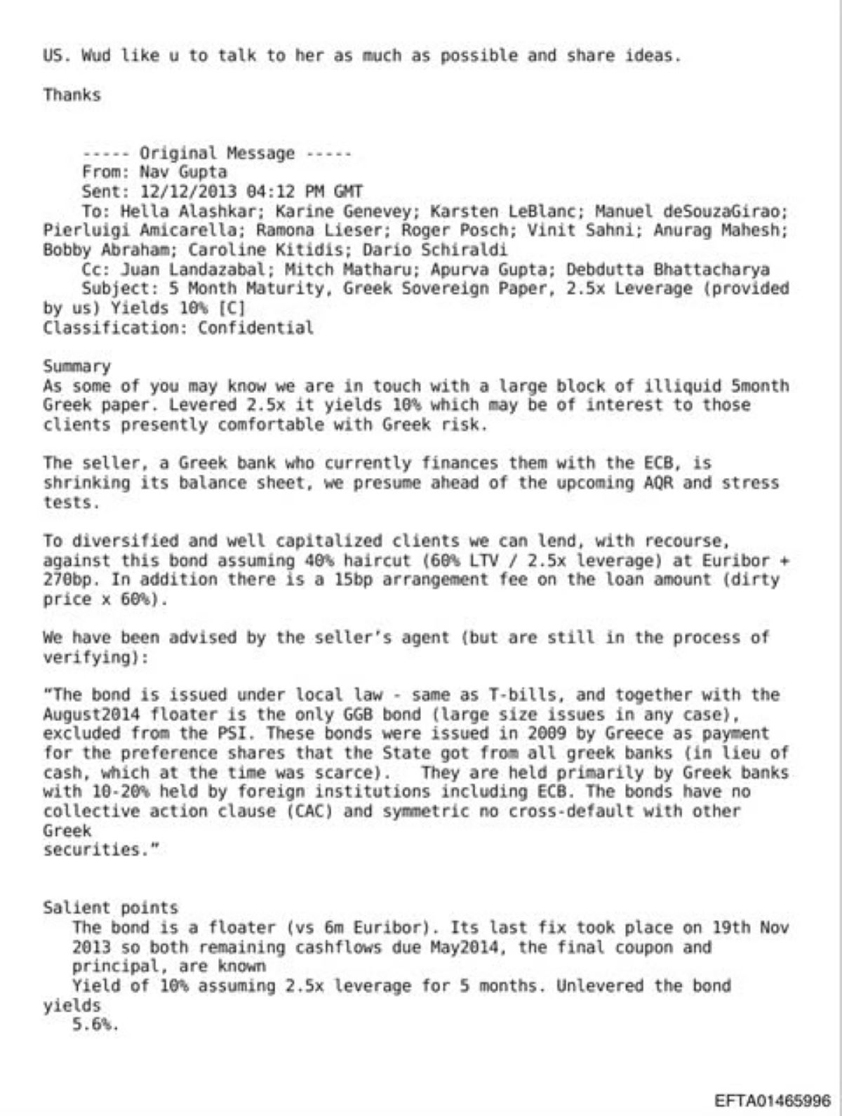 Ο Nav Gupta περιέγραψε μια επενδυτική ευκαιρία σε μη ρευστά πεντάμηνα ελληνικά κρατικά ομόλογα. Στο έγγραφο περιλαμβάνονται οι σελίδες 7 και 9.