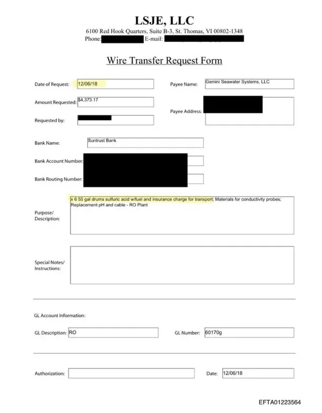 Στο μεταξύ όπως αποκαλύπτουν έγγραφα, την ίδια ακριβώς ημέρα που το FBI άνοιξε υπόθεση για σεξουαλική εμπορία παιδιών το 2018, ο Έπσταϊν παρήγγειλε έξι δοχεία των 55 γαλονιών γεμάτα θειικό οξύ στο ιδιωτικό του νησί.