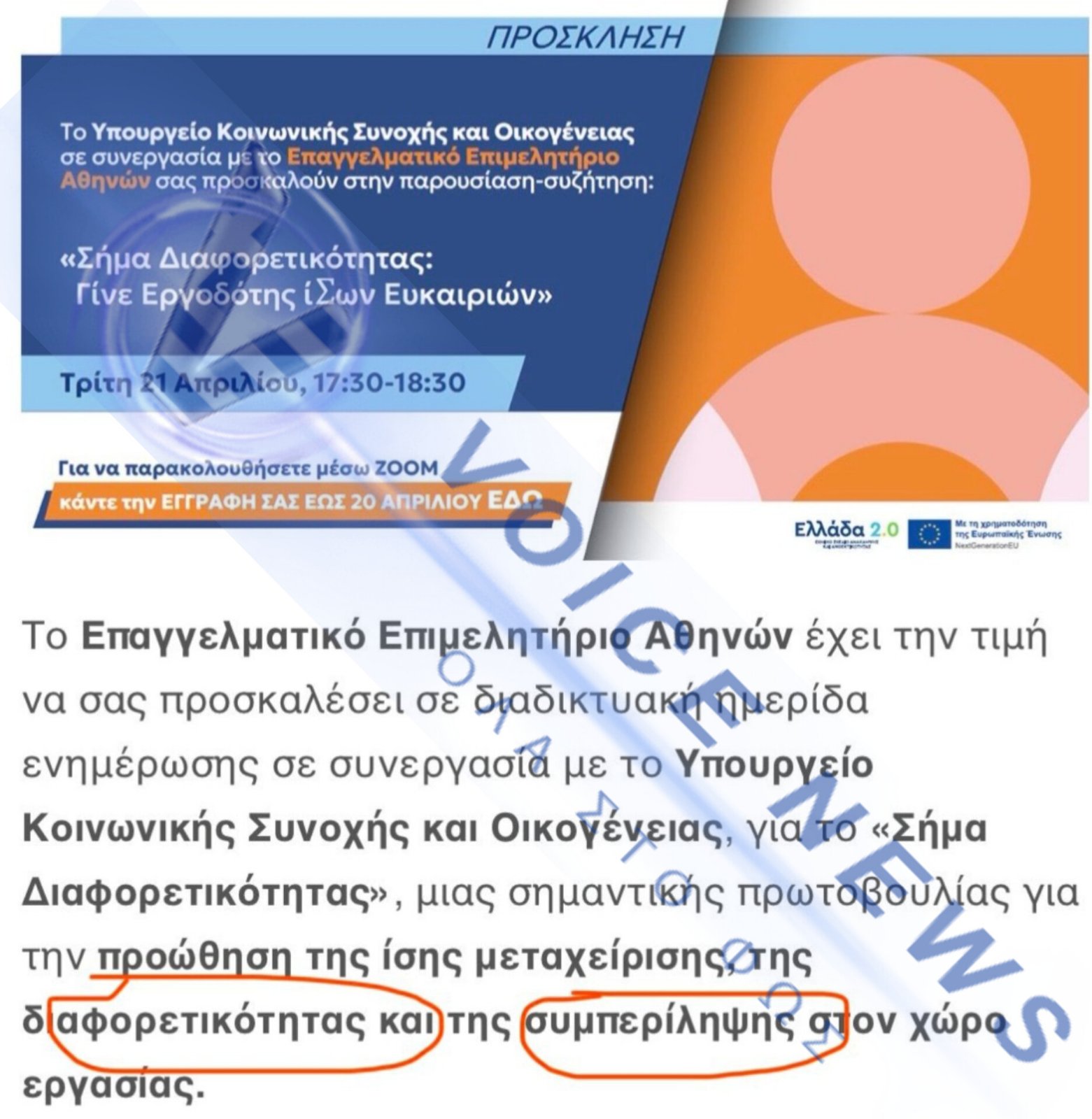 Με την αρωγή του δήθεν Υπουργείου Οικογένειας (όπως την εννοούν αυτοί) και του Επαγγελματικού Επιμελητηρίου Αθηνών θέλουν να επιβάλουν στις επιχειρήσεις και στα καταστήματα να προσλαμβάνουν κατά προτεραιότητα ή με ποσόστωση, προσωπικό από διάφορες «ευάλωτες» ομάδες (μετανάστες, ομοφυλόφιλους κλπ) με βάση τις αρχές της «συμπερίληψης» και της αποδοχής της «διαφορετικότητας».